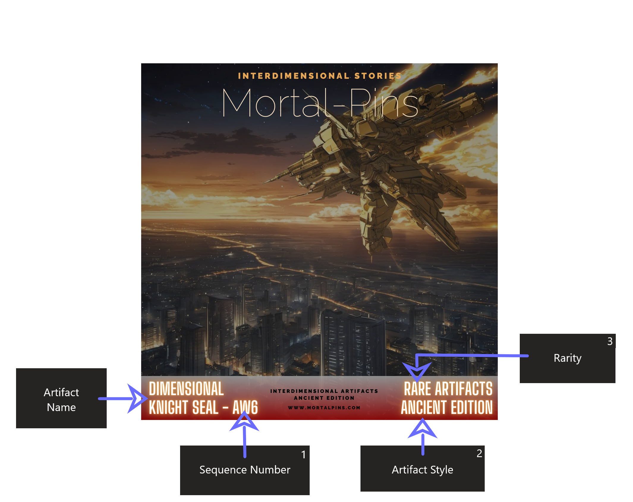Each artifact is identified by a unique sequence code. The abbreviation reflects the series title—for example, AW stands for Aetherian War, the inaugural saga within the Interdimensional Stories. The accompanying number indicates the chronological order of release, allowing collectors to trace the evolution of the series across dimensions and timelines.